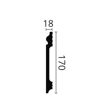 Fotlist FL17 HDPS 18x170x2000mm produseres i high density polystyren (HDPS)