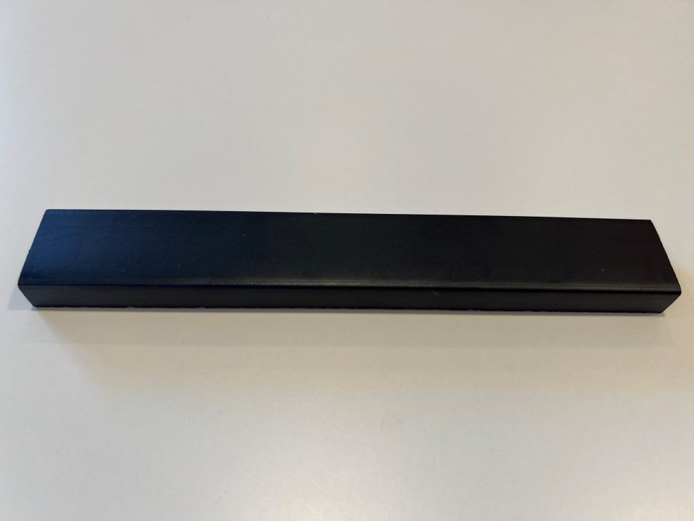 UHDPS et ekstremt hardt og robust kunstmateriale som benyttes på steder hvor det kreves ekstra hardføre lister. For eksempel i offentlig rom. Vi leverer blant annet lister i denne kvaliteten til hoteller, kjøpesenter og skoler. Listverk i kunststoff er mer stabilt enn treverk, holder seg pent over tid og de holder den samme høye kvaliteten hele veien. Denne listen er støpt og gjennomfarget i RAL 9011.